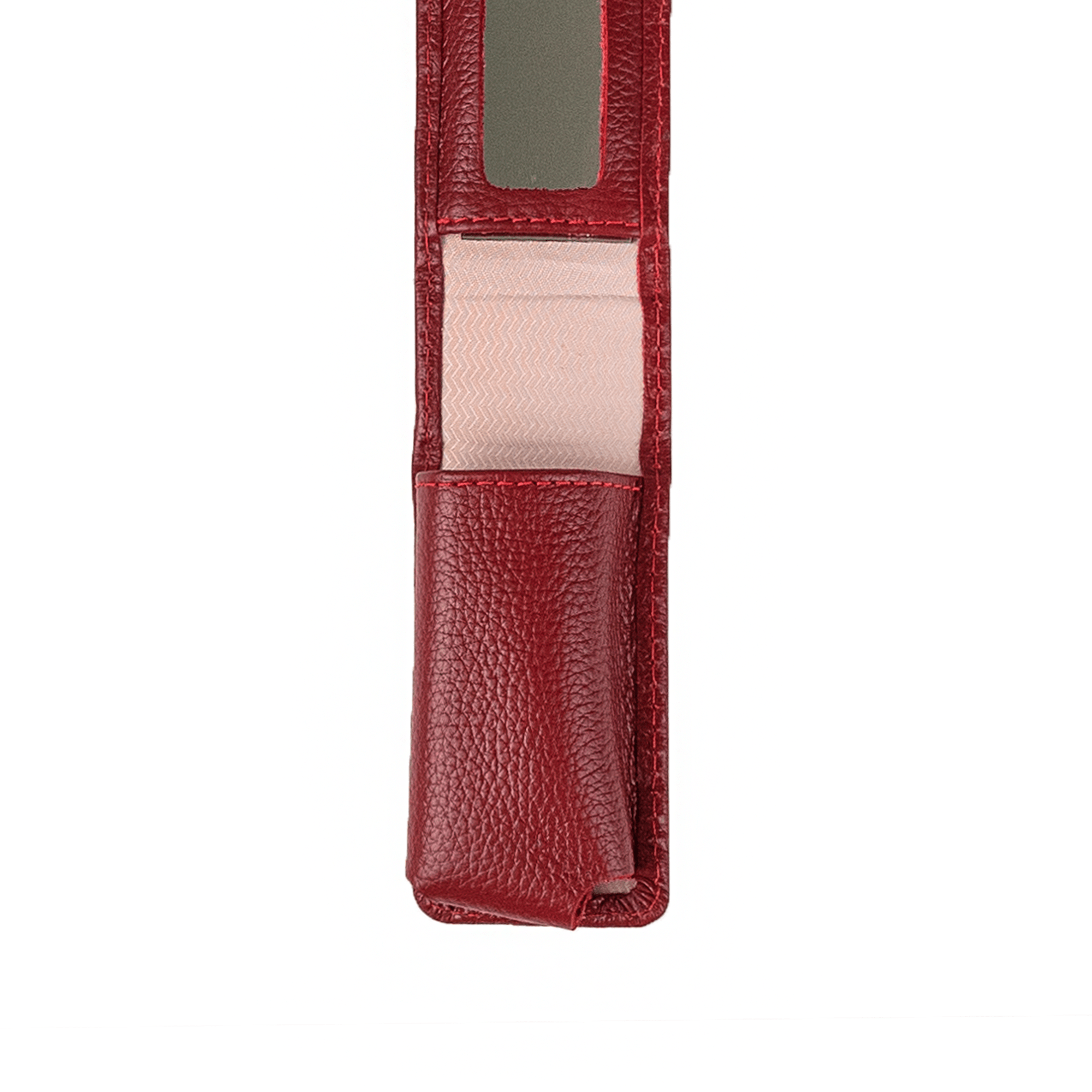 Porta batom em couro com espaço para 1 batom. Uma opção para quem possui um espaço mais reduzido na bolsa. Material: Couro Cor: Vermelho Dimensões: 4 cm x 8 cm (Largura x Altura).